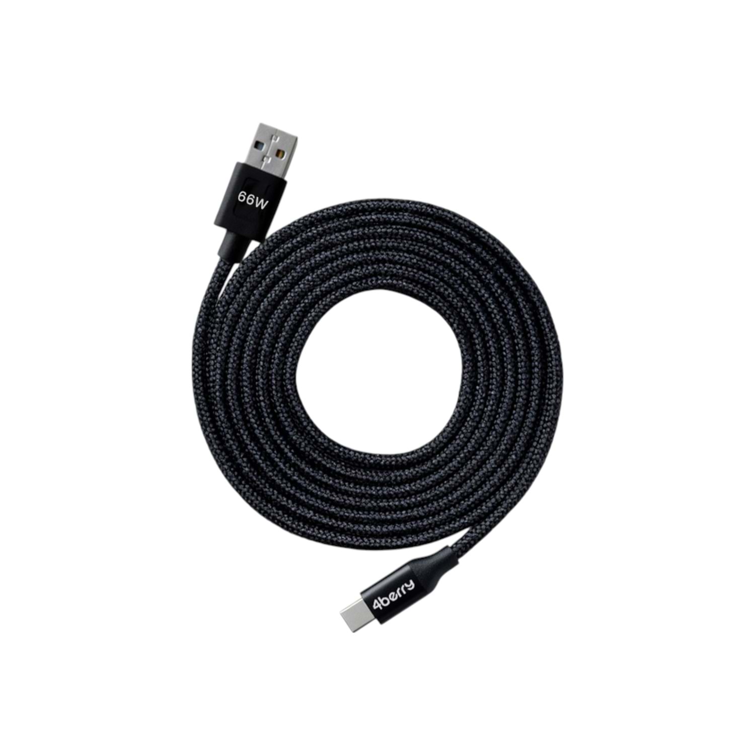 4Berry ECO-AC Siyah USB-A›USB-C Örgülü Kablo – 66 W Hızlı Şarj, 1,2 M